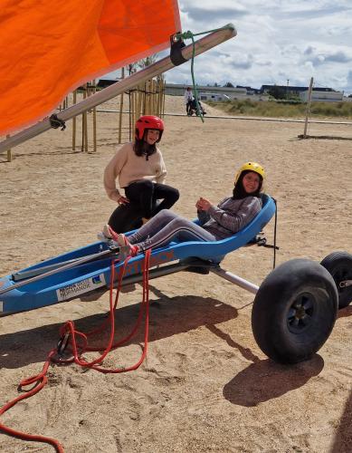 Ensuite, nous avons mangé. Après, on a fait du char à voile. Au début c'était stressant, après c'était très bien, nous avions de l'adrenaline. Nous avons mangé et ensuite on a fait une soirée jeux de société.