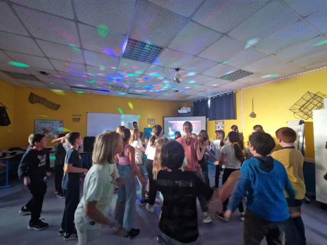 Jeudi soir, nous nous sommes préparés pour la grande et dernière soirée. Lors du repas, nous avons eu une part de gâteau pour fêter les anniversaires de la semaine : Augustin, Mattéo, Gabriel G. et Alec. Nous nous sommes rassemblés dans la grande salle pour débuter le spectacle ! Nous avons assisté à des tours de magie, de la danse, du théâtre et des sketchs. Nous avons même eu le droit à des bonbons et des boissons. (Les photos de la soirée dansante ont été prises le mercredi soir).